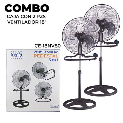 2 Ventiladores de piso 80W 3 en 1 de 18″ Aspas de Metal
