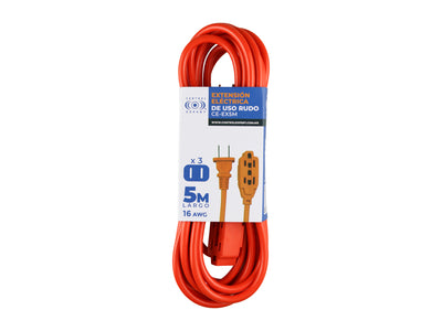 Extensión Eléctrica Uso Rudo 5 Metros Reforzada Color Naranja